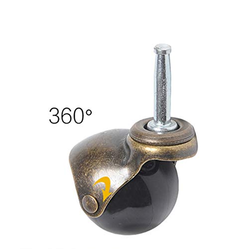 Set di 5 Rotelle a Sfera da 50mm per Mobili,Girevoli a 360°, con Freno,8mm x 38mm Stelo Lungo,Ricambio per Divano,Sedia,Armadietto Antico Glod Sfera Girevole Ruote,Capacità 30kg