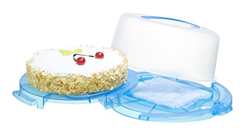 Rotho 1720106651 Contenitore porta dolci, porta torta Cool & Fresh in plastica PP, ideale per trasportare e tenere al freddo le torte, con manico e tavoletta refrigerante, circa 38 x 34 x 16 cm, trasparente/blu