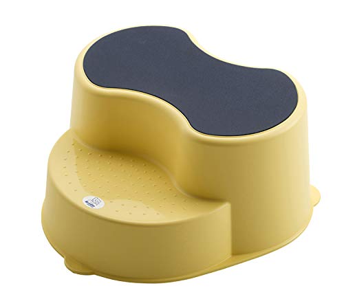 Sgabello di design stabile per bambini con linee eleganti, 2 gradini e grande superficie antiscivolo, per l'uso quotidiano, ideale per raggiungere il lavandino o il WC, pratica possibilità di sedersi.