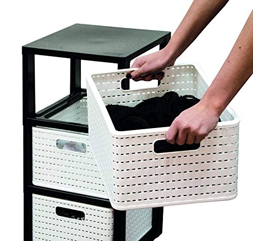 Rotho Cassettiera contenitore con ruote “Country” effetto rattan - contenitore (37.5x32.5x71.2 cm) con cassetti in materiale plastico (PP) - carrello con 3 cassetti - Cassettiera a torre in nero/bianco - Cassetti estraibili da entrambi i lati