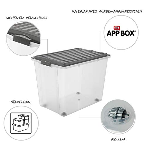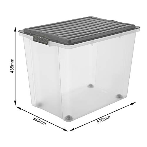 Rotho Compact Scatola con Coperchio e Ruote, Plastica (PP) senza BPA, Grigio/Trasparente, A3/70 L, 57.0 x 39.5 x 43.5 cm