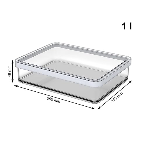 Rotho Loft Contenitore Rettangolare con Coperchio e Guarnizione, Plastica (SAN) senza BPA, Trasparente/Bianco, 1 L, 20.0 x 15.0 x 4.8 cm