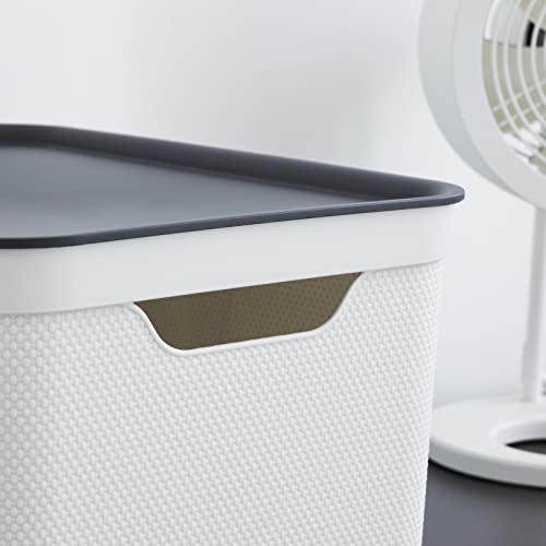 Rotho Jive Dekobox - Set di 3 scatole portaoggetti da 16 l con coperchio, in plastica (PP riciclata), bianco/antracite, 3 x 16 l (37,5 x 27,8 x 29,8 cm)
