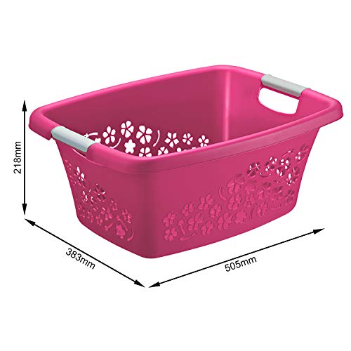 Rotho Flowers Cestino Lavanderia con 2 Maniglie, Plastica (PP) senza BPA, Rosa, 25 L, 50.5 x 38.3 x 21.8 cm