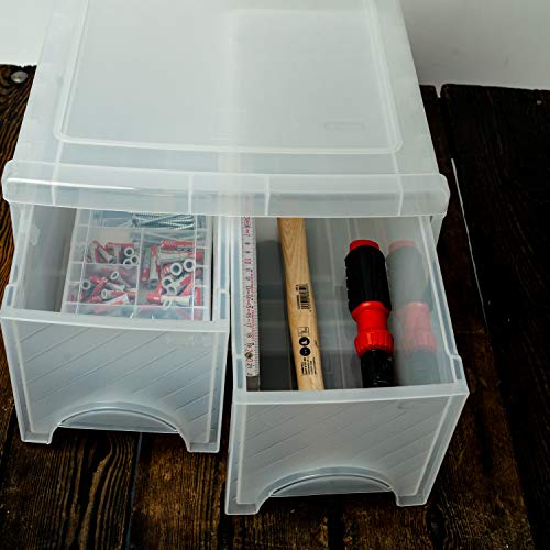 Rotho Frontbox Cassettiera grande con 2 cassetti, Plastica PP senza BPA, Transparente, Twin 44.0 X 34.0 X 20.0 cm