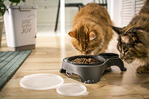 Rotho MyPet Sally Doppia Ciotola di Alimentazione con Coperchio, Plastica (PP) senza BPA, Grigio (Antracite), 1 L + 0.28 L, 32.0 x 23.7 x 7.0 cm