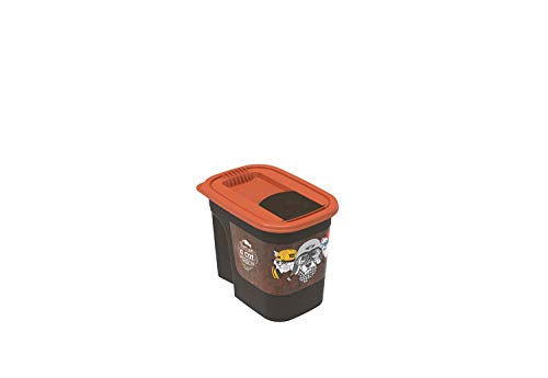 Rotho Flo Scatola per alimenti per animali domestici 2.2l con coperchio e patta, Plastica PP senza BPA, Marrone/Arancione, 2.2l 19.5 x 13.6 x 16.2 cm
