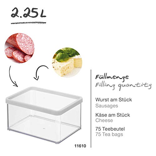 Rotho Loft Scatola Rettangolare con Coperchio e Guarnizione, Plastica (SAN) senza BPA, Trasparente/Bianco, 2.25 L, 20.0 x 15.0 x 9.6 cm