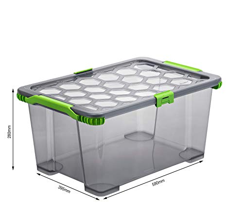 Rotho Evo Total Protection Scatola di Conservazione con Coperchio, Plastica (PP) senza BPA, Grigio (Antracite)/Trasparente, 44 L, 59.0 x 39.5 x 28.0 cm