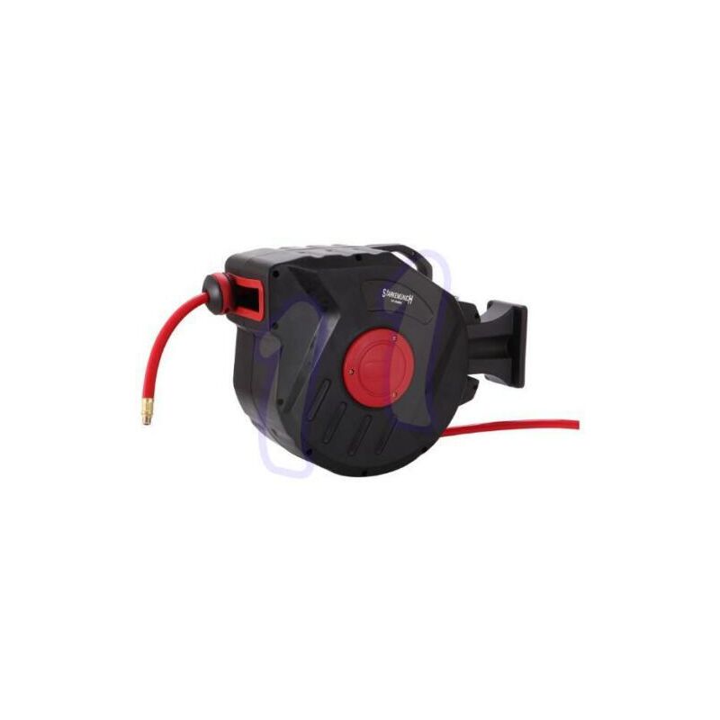 Rotolatore Tubo aria compressa con avvolgi tubo automatico 20 Metri Caratteristiche tecniche: Avvolgitubo prolunga aria compressa Lunghezza prolunga cavo: 20 Mt. Avvolgi tubo Automatico Ruota dentata con blocco automatico Manico di trasporto Possibilità di fissare il prodotto al muro Viti fissaggio INCLUSE nella confezione Tubo in gomma resistente SPESSORE ESTERNO TUBO 15 mm SPESSORE INTERNO TUBO 9,5 mm TUBO RETINATO