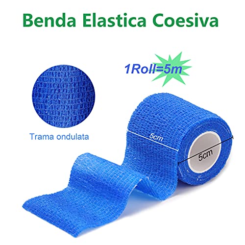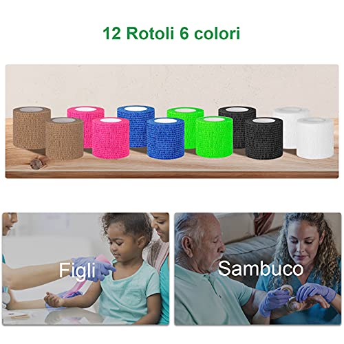 12 Rotoli Benda Elastica Coesiva, Yolaist Garza Autoadesiva Bende Nastro Crossfit Benda Elastica per Fasciatura 6 colori 5m x 5cm