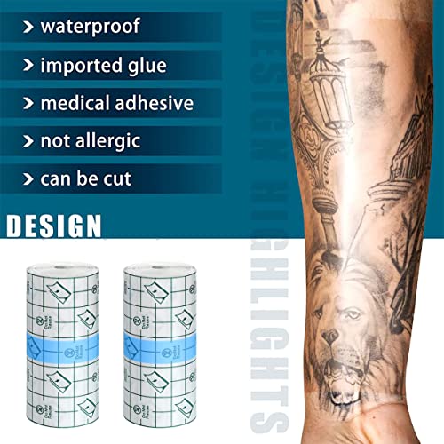 2 rotoli di bendaggio adesivo impermeabile post-cura (15,2 cm x 1,1 m / rotolo), seconda pelle guarigione bendaggi protettivi trasparente elastico per la doccia tatuaggi