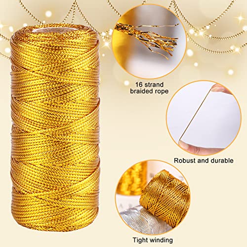 Filo d'oro,3 Rotoli Filo Dorato,1.5MM Tinsel Corda per Decorazioni,Cordoncino Metallico,Filo di Spago Natalizio,Cordoncino Oro per Artigianato Decorazione di Natale Confezioni Regalo Perline (300M)