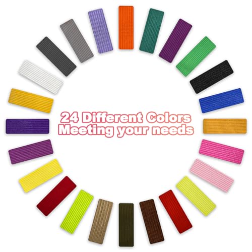 【24 Fascia Elastica Colorata Colorati】: Riceverete 24 elastico per cucito colorati in diversi colori, larghezza di 25 mm e una lunghezza di 1m. Puoi tagliarlo e usarlo in base alla lunghezza che ti serve. Gli nastro elastico dai colori vivaci offrono un'esperienza visiva migliore, non solo per le esigenze di colore del cucito, ma anche per abbinarsi meglio all'artigianato.
