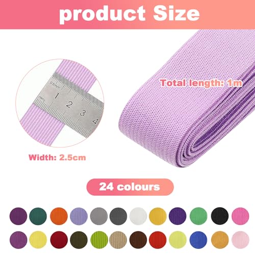 24 Rotoli Elastica Banda per Cucito, 25mm x 1 m Fascia Elastici Piatto Cucito Nastro, Rotolo di Elastico per Cucito in Poliestere, per Cucito per Vestitii, Artigianato Fai-da-Te (24 Colori)