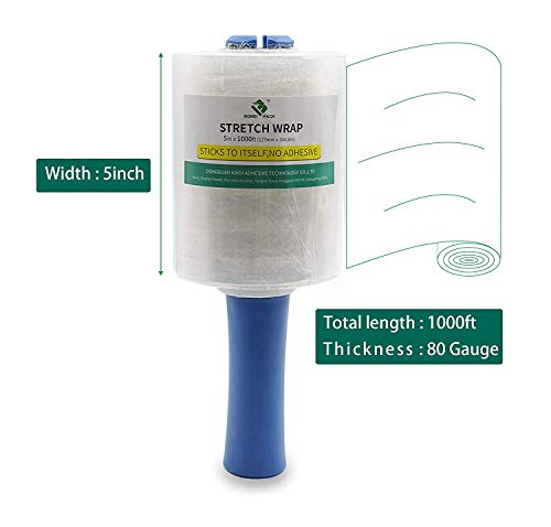 Confezione da 4, più economica - La mini pellicola estensibile industriale contiene 4 rotoli di avvolgimento calibro 80 larghi 5 pollici per 1.000 piedi di lunghezza. È sufficiente per fissare saldamente gli oggetti per lo spostamento, l'imballaggio e lo stoccaggio
