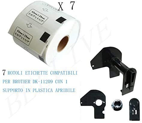 7 Etichette adesive compatibile per Brother DK-11209 29mmX62mm con telaio/Supporto in plastica apribile DK-11209.