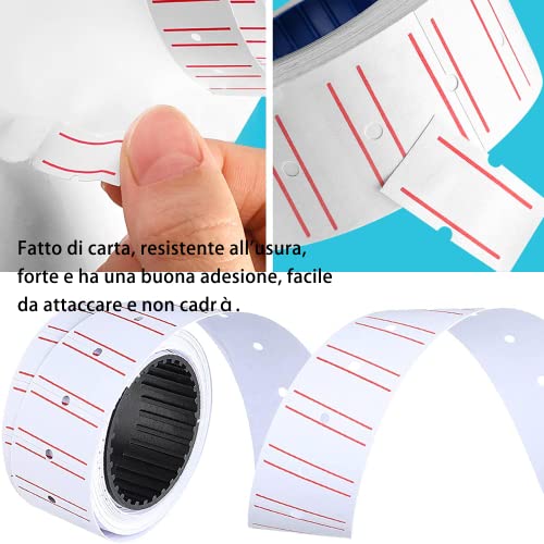 【Red Line Design】: Le doppie linee rosse su ogni cartellino del prezzo sono chiare e luminose, rendendole perfette per il prezzo o l'etichettatura dei prodotti. Hanno una linea di stampa facile da usare, facile da leggere e l'inchiostro sulla ruota di rifornimento si asciuga rapidamente, fornendo una stampa chiara e facile da usare.