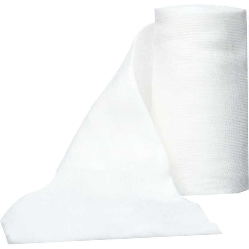 Rotoli di garza in cotone 100% rilevabili ai raggi x (circa 60% bario solfato), conformi alla farmacopea europea e alle norme en 14079. Scatola con informazioni multilingue: inglese, francese, italiano, spagnolo, portoghese, tedesco, olandese, serbo. Dimensioni: larghezza della garza 80 cm, larghezza stesa 80 cm x 2 m, larghezza piegata 10 cm x 2 m, 8 strati, qualità 20 fili/cmq.