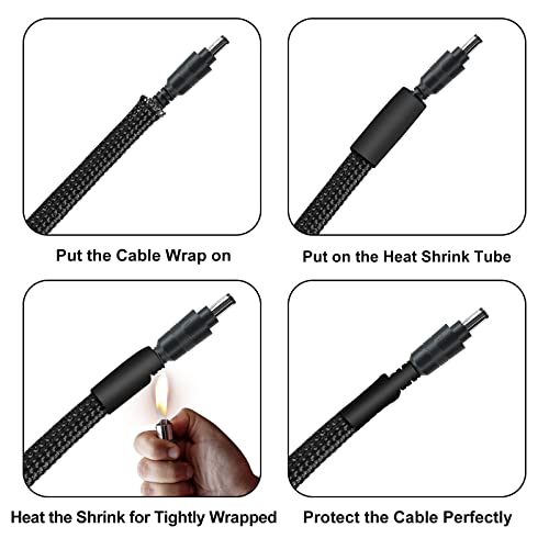 4 rotoli di guaina in PET nero da 5 m per cavo intrecciato espandibile, con 20 tubi termorestringenti (8/10 mm), per cavi audio e video per dispositivi domestici (6/8/12/16 mm)