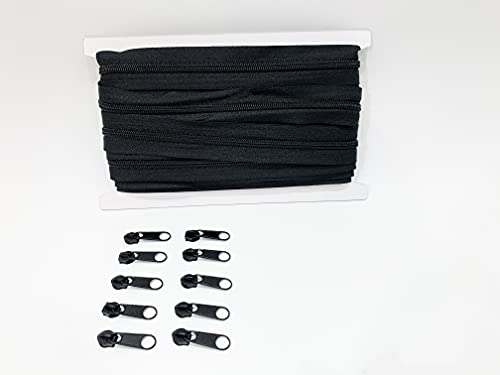 Rotoli da 10 metri, Chiusure Lampo continue in nylon 5#, con 10 cursori liberi in metallo per cucito, diversi colori e dimensioni, (332, 5#)