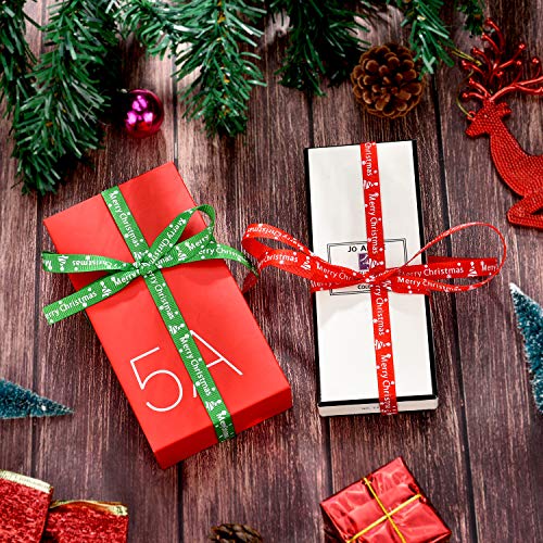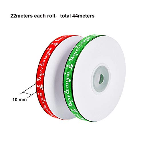 2 Rotoli 44 Metri Totalmente Nastro di Natale Stampato Merry Christmas Nastri Regalo Nastro Avvolge per Festa Regali Mestieri, 10 mm Largo