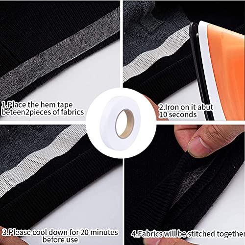 【Ampia applicazione】Il nastro orlo termoadesivo è un accessorio ideale per incollare e fissare i vestiti, adatto per orlare e incollare la maggior parte dei vestiti e dei tessuti: pantaloni, gonne, camicie, tende, ecc. Si sconsiglia di applicarlo su tessuti troppo elastici.