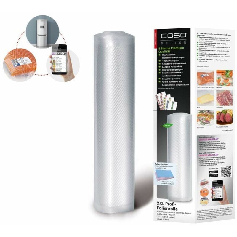 I Rotoli per Sigillatrici Sottovuoto Taglia XXL di Caso sono dei pratici rotoli per il confezionamento sottovuoto di alimenti freschi e secchi resistenti agli strappi e riutilizzabili. La trama a coste permette di ottenere migliori risultati del sottovuoto per mantenere a lungo nel tempo condizioni ottimali di conservazione degli alimenti. Il materiale è privo di BPA ed è molto resistente, impedendo la penetrazione di oggetti appuntiti come ad esempio ossa o lische. I Rotoli per Sigillatrici Sottovuoto Taglia XXL sono adatti per l'uso in forno microonde fino a massimo 70°C e possono essere utilizzati per riporre gli alimenti nel congelatore. Caso pone la sua attenzione agli sprechi alimentari e alla sostenibilità inserendo nella confezione delle etichette adesive su cui è possibile segnare la data di scadenza, il contenuto del sacchetto e il peso del contenuto. Inoltre, grazie al QR Code presente sulla superficie delle stesse, è possibile comunicare con la Caso Food-Manager App
