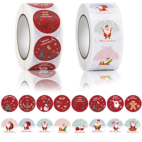 [La confezione contiene] La confezione contiene 2 rotoli di adesivi natalizi, per un totale di 1000 adesivi natalizi rotondi. Il diametro dell'adesivo è di circa 2,5 cm.