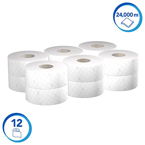 Maxi Rotolo di Carta Igienica Scott Essential 8614 - Carta Igienica a 2 Veli - 12 Rotoli X 500 Fogli di Carta Igienica Bianchi (2.400 M)