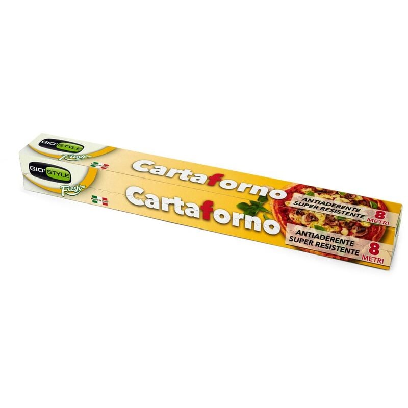 Rotolo cartaforno 8 m da 41gr. Per alimenti, nel comodo box in cartone con seghetto per lo strappo. Antiaderente e superresistente. Cuocere in modo leggero e naturale, senza aggiunta di grassi o condimenti. La sua particolare composizione garantisce la massima antiaderenza, evitando che i cibi si attacchino alla teglia. Carta Forno può essere utilizzata nel forno tradizionale, nel forno microonde, in padella, in acqua calda per la cottura a vapore, e in frigorifero e freezer per la conservazione.