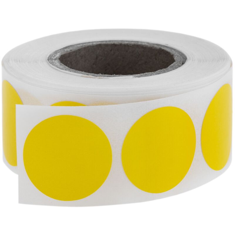 Rotolo di etichette adesive circolari gialle con un diametro di 19 mm. Adesivo con fondo giallo e superficie satinata che permette di scrivere sulla sua superficie. Perfetto per decorare, classificare e ritagliare pacchi, buste, invii postali, libri, quaderni, copertine, tavoli, scaffali, ecc. Caratteristiche del prodotto: DESIGN: etichetta adesiva circolare di colore giallo opaco con superficie satinata che permette di scriverci sopra. Fornito in formato rotolo per facilitarne l'applicazione. INSTALLAZIONE: L'applicazione dell'etichetta è molto semplice e veloce, basta staccare l'etichetta dalla carta protettiva bianca, quindi applicarla sull'oggetto, superficie o materiale desiderato. IDEALE: perfetto per l'uso in attività a casa, uffici, centri educativi, ecc. come classificatori, identificatori e organizzatori di scatole, cassetti, barattoli, bottiglie, documenti, aree nei processi di inventario, classificazione di documenti, identificazione di schedari, marcatura di scatole