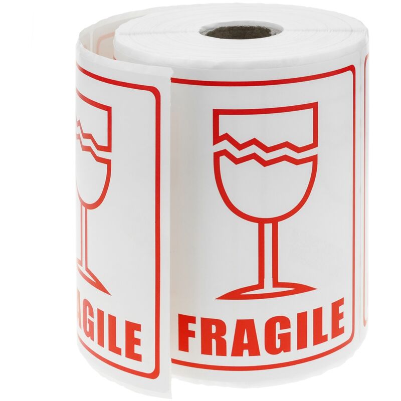 Rotolo da 500 etichette adesive permanenti rettangolari bianche con bordi arrotondati, scritta FRAGILE e icona rossa. Etichetta per informare il consumatore che il pacco o il pacco è fragile. Perfetto da agganciare a pacchi, buste, invii postali, libri, scatole, scaffali, ecc. contenenti prodotti fragili. Caratteristiche del prodotto: CARATTERISTICHE: Etichetta rettangolare con superficie bianca, testo e icona di avvertenza per fragilità in rosso. Rotolare per etichettare tutti i tipi di oggetti e informare l'utente che l'oggetto, il pacco o il pacco ha una struttura fragile. Include un adesivo permanente, sul retro, difficile da rimuovere. DESIGN: etichetta rettangolare con superficie bianca e testo fragile in rosso. Inoltre, include un'icona a forma di vetro rotto per una rapida identificazione dei pacchi fragili. IDEALE: Per uso commerciale e industriale su superfici piane agganciando e segnalando la fragilità di ogni tipo di oggetto. MATERIALE: Bobina di etichette autoadesive