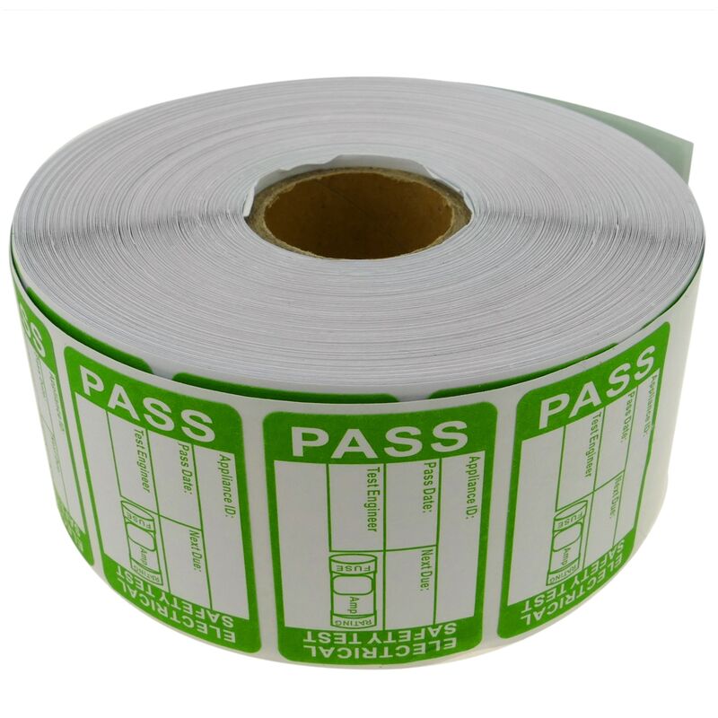 Rotolo da 1000 etichette adesive permanenti rettangolari bianche con bordi arrotondati, testo PASS / PROVA DI SICUREZZA ELETTRICA e foglio di prova verde. Etichetta per informare, avvertire e segnalare al consumatore che l'oggetto ha superato le prove elettriche. Perfetto per aggancio su macchine, dispositivi, impianti, targhe, pacchi, buste, invii, ecc. Caratteristiche del prodotto: CARATTERISTICHE: Etichetta rettangolare con superficie bianca e informazioni di prova in verde. Rotolare per etichettare tutti i tipi di oggetti e informare l'utente che l'oggetto, il dispositivo o l'installazione ha superato il test elettrico eseguito. Include un adesivo permanente, sul retro, difficile da rimuovere. DESIGN: etichetta rettangolare con superficie bianca e testo informativo sul test verde. IDEALE: Per uso commerciale, centrale e industriale su superfici piane aggancio, segnalazione e segnalazione di dispositivi o installazioni che hanno superato le prove elettriche. MATERIALE: Bobina di
