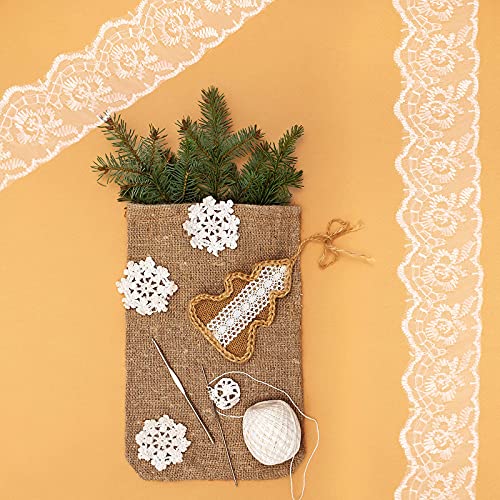 Hejo 1 Rotolo di Nastro di Tela Naturale di 10m con 1 Rotolo di Nastro di Pizzo Bianco di 10yard e 2 Rotoli di Corda da Giardino per Artigiano Fai da Te di 10m,Composizioni Floreali,Confezioni Regalo