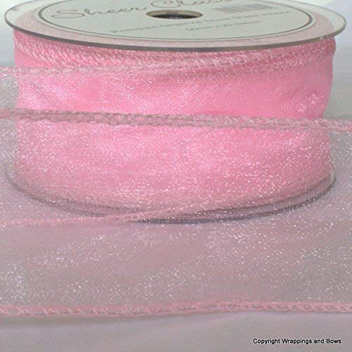 Rotolo di nastro di organza con bordo in fil di ferro, 50 x 20 metri Pink