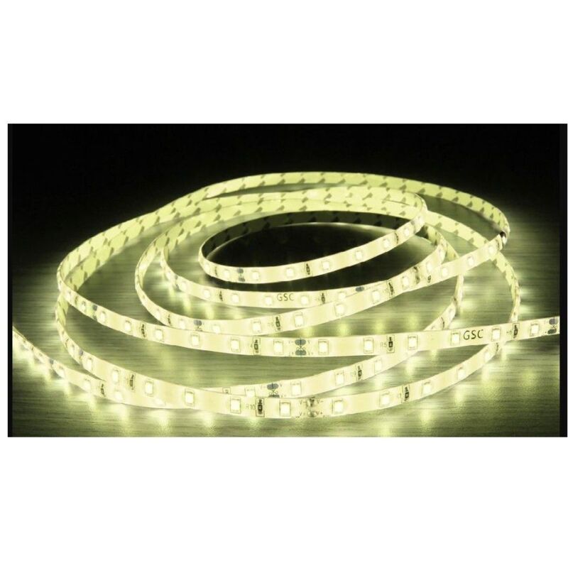 Striscia LED in rotolo 5M SMD2835 Flessibile, autoadesiva e fissa. Larghezza 8mm. Uso esterno. IP65. Alimentazione DC 24V. 60 LED al metro. Nastro adesivo 3M. È possibile tagliare nelle aree delimitate ogni 100mm (ogni 6 LED).