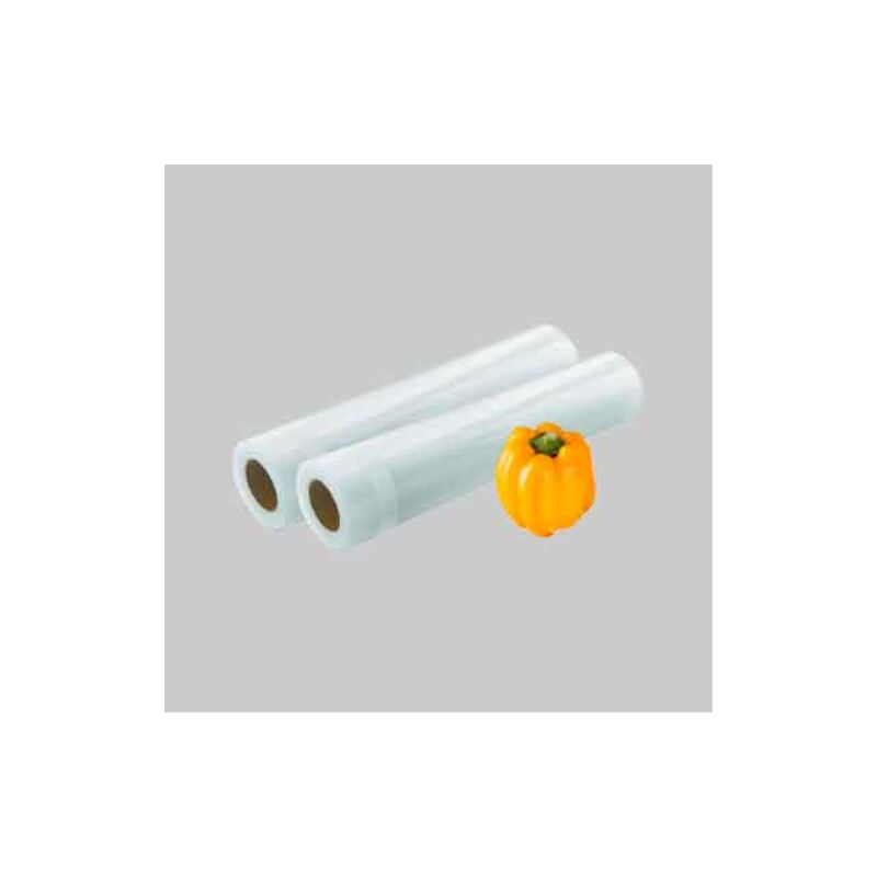 In polietilene atossico con piccole celle romboidali impresse su un lato, che garantiscono la massima aspirazione dell'aria. Ideali per macchine ad estrazione esterna domestiche e professionali. Rotolo per sottovuoto 15x600 cm Macchine sottovuoto