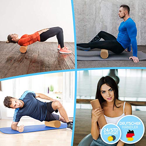 Rotolo di Sughero massaggiante 15 x 6 cm con Libretto di Istruzioni e per l'allenamento della Zona Trigger - per Il Trattamento della Fascia Auto-Massaggio del Tessuto connettivo e del metabolismo