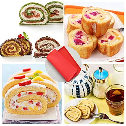 Rotolo Torta Mat, Tappetino Teglia Riutilizzabile Resistente Calore, Tappetino Forno Antiaderente Multifunzione, Per Fare Rotoli Svizzeri, Zucchero Canna, Biscotti, Cioccolatini (Rosso 2 Pezzi)