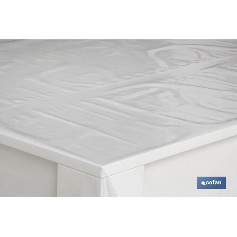 Rotolo di tovaglia flessibile 100% PVC utilizzata come proteggi tavolo. Disponibile nelle seguenti misure: 1,40 x 50 m di lunghezza e 15 micron di spessore, 1,40 x 30 m di lunghezza e 20 micron di spessore e 1,40 x 20 m di lunghezza e 30 micron di spes