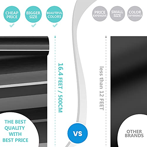 Nero lucido 12 pollici x 16.4 piedi (30,5 x 500 cm)/ rotolo - Vinile adesivo nero lucido di alta qualità, il nero classico è abbastanza adatto per la vita quotidiana, può essere applicato facilmente alla più ampia varietà di materiali di base. perfetto e abbastanza da usare per la decorazione quotidiana fai-da-te o per occasioni speciali.