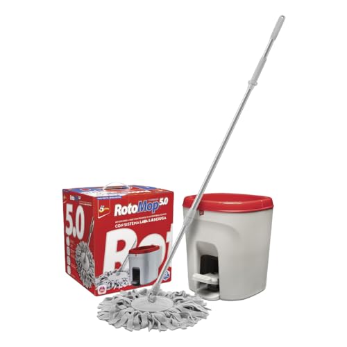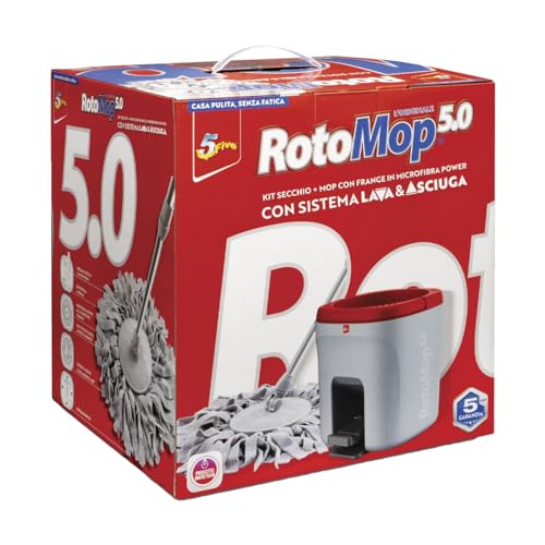 ROTOMOP 5.0 Kit Secchio + Mop con Frange in Microfibra Power con Sistema Lava & Asciuga