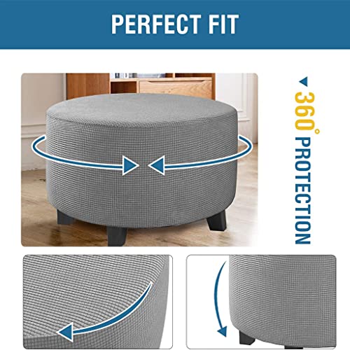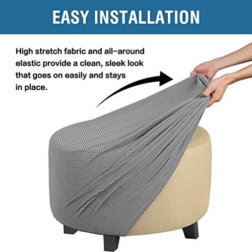 Rotondo Copri Pouf Elasticizzato, Jacquard Copri Poggiapiedi Quadrato con Fondo Elastico Pieghevole Copertura Dell'Ottomano Morbido Lavabile Sofa Protettore per Soggiorno-Grigio Chiaro-S