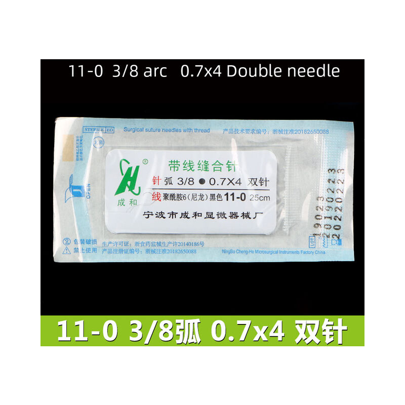 Ago di sutura con filo【Brand】: cheng ha【Material】: filo di nylon/ago in acciaio inox【Models】: 3-0/4-0/5-0/6-0/7-0/8-0【Specification】: Rotondo ago ago singolo/doppio ago【Features】: first - line ago singolo/di prima linea a doppio ago【Thread length】: singolo filo: 35cm/filo doppio: 45cm【Explanation】: il prezzo di listino è di 10【Suitable for】: cosmetici chirurgia plastica e chirurgico di sutura a mano