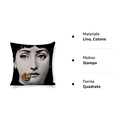 ROTOOY Lina Cavalieri Federa per cuscino in cotone e lino, decorazione quadrata con occhio personalizzato, include solo federa, 45 x 45 cm (A22)