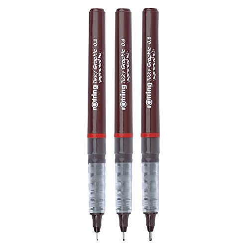 Rotring Tikky set di penne grafiche di precisione 0,20 mm, 0,40 mm, 0,80 mm (blister da 3)