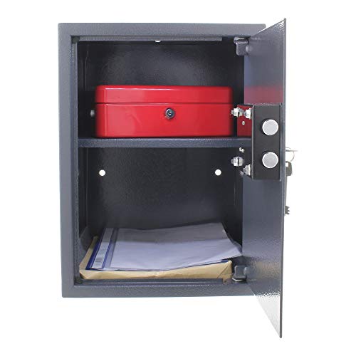 Rottner cassaforte da scaffale Home Star 4 con serratura a chiave e blocco di chiusura a 2 chiavistelli, in acciaio a parete singola, fissaggio a parete o pavimento di colore nero.