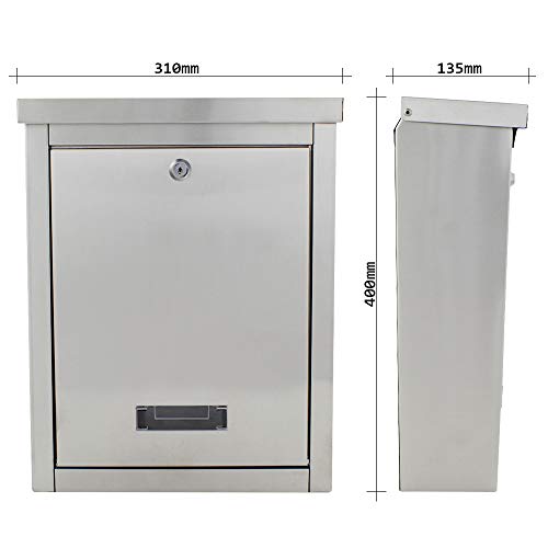Rottner cassetta postale Brighton, in acciaio inox spazzolato, con serratura a cilindro, apertura frontale con fermaporta, targhetta portanome, di colore inox.