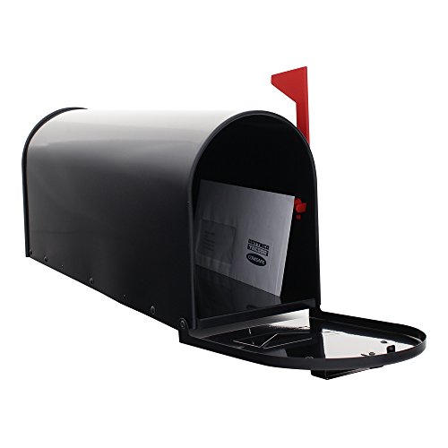 Rottner cassetta postale in stile americano Mailbox Nera, in lamiera d'acciaio, di grande capienza, con bandierina rossa pieghevole, montaggio con supporto (venduto separatamente), nera.